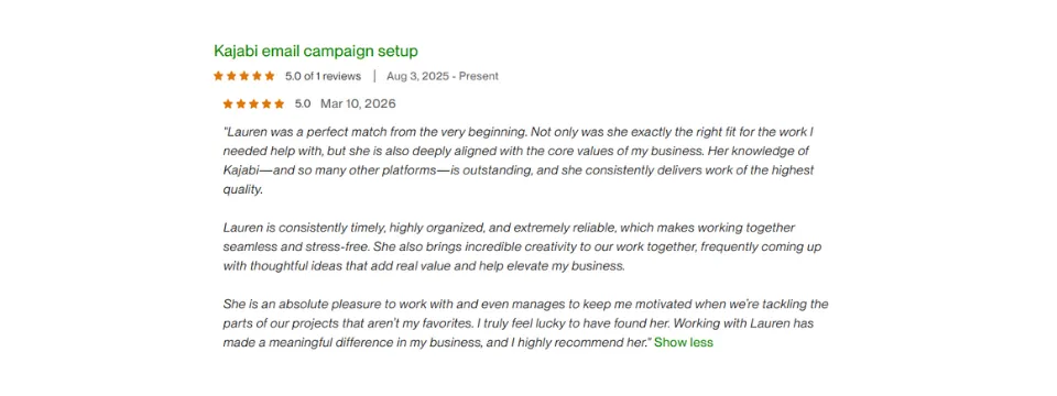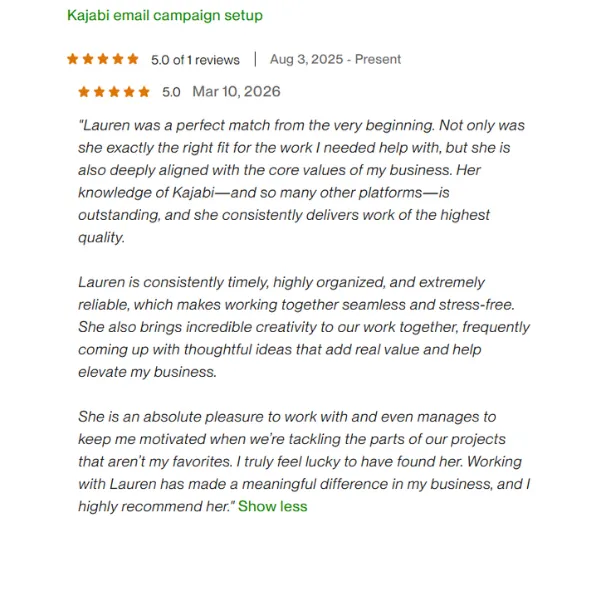 However, some of the feedback I’ve gotten from Kajabi users who are not technical is that they don’t always know the most efficient way to set things up. This is where they hire a Kajabi Specialist like me to either handle the initial setup so they know it’s done right from the beginning, or they hire me to audit and optimize the existing setup to make sure their system is running as efficiently as possible.